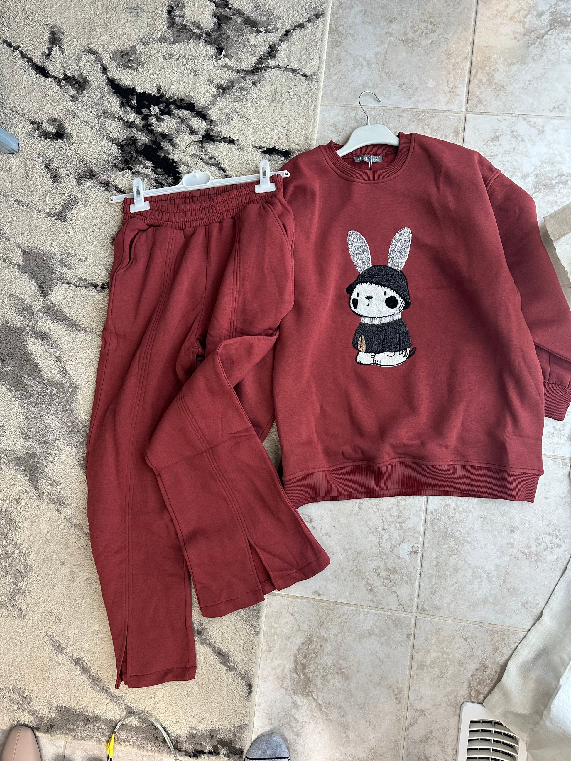 Cartoon Bunny Graphic Sweatshirt and Pants Set – Cozy Casual Wear
