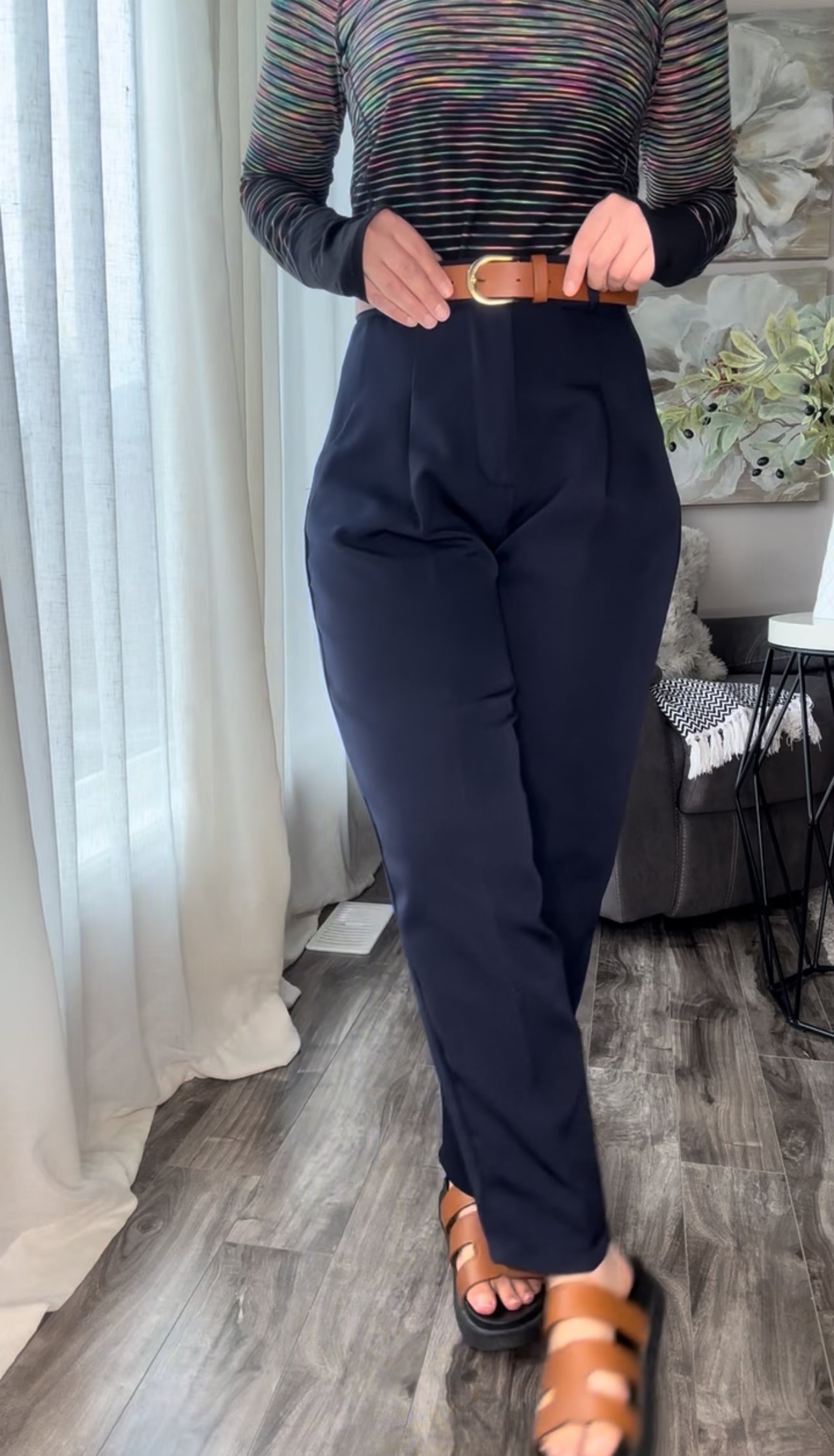 High rise. Button closure. Tailored wide straight leg Trousers.