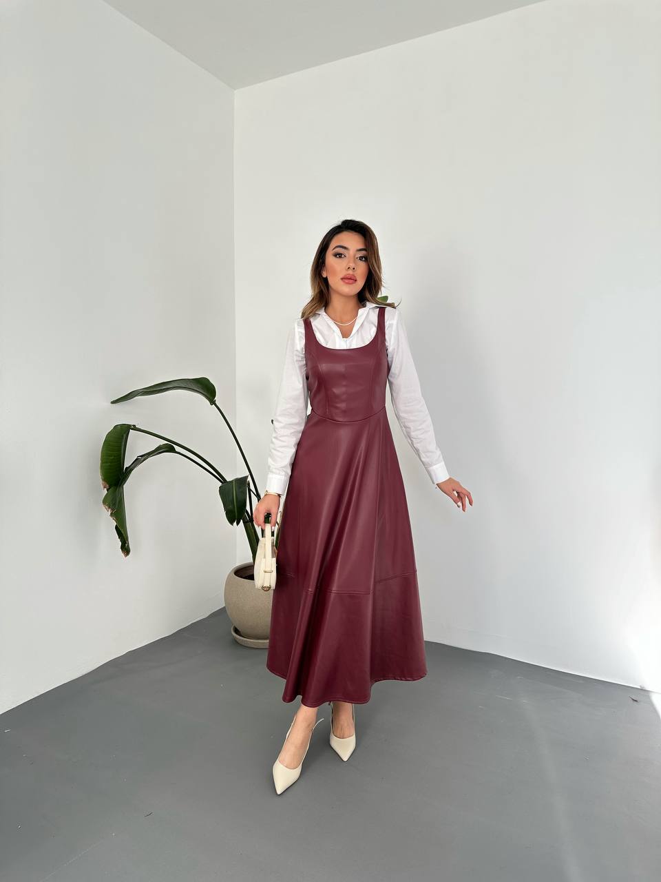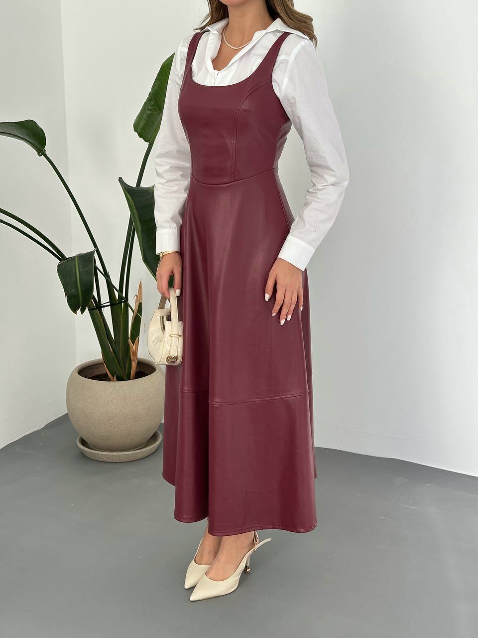 Faux Leather Sleeveless Midi Dress – Layered Modest Style (Shirt Sold Separately)