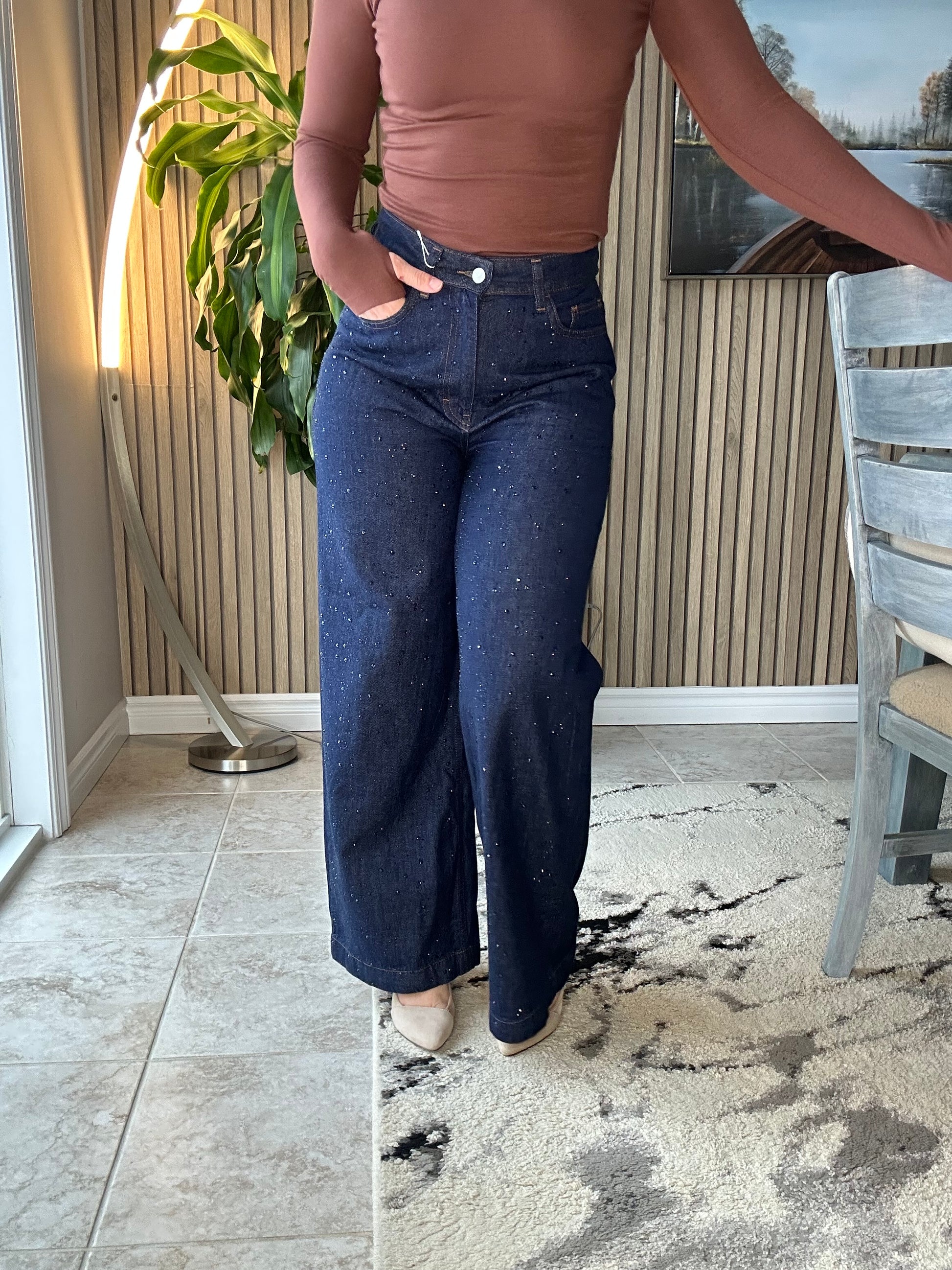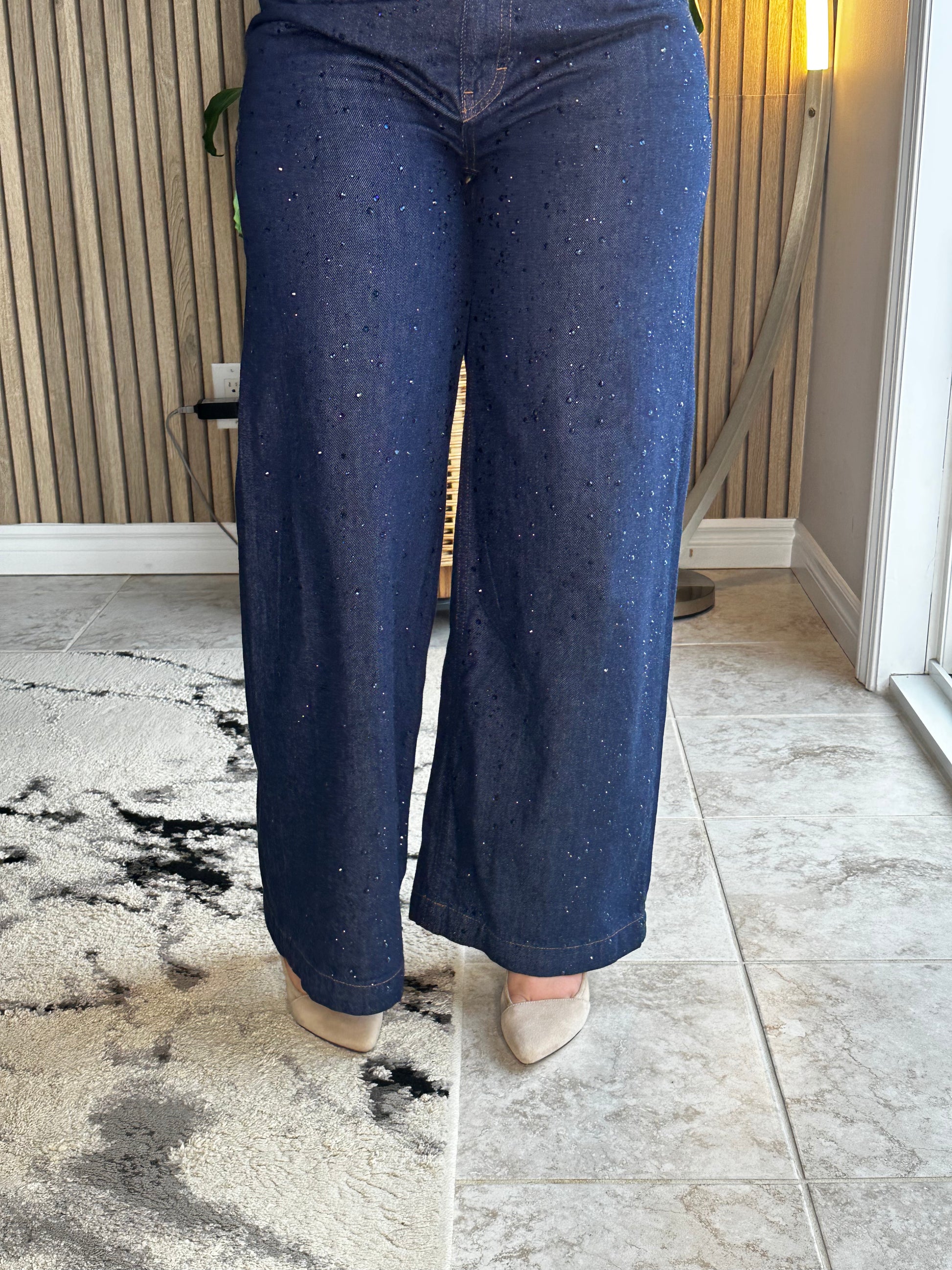 Ikoll Jewelled Wide-Leg Denim – Midnight Speckle Finish