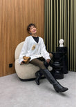 • Plush oversized cardigan with deep V-neck and relaxed silhouette