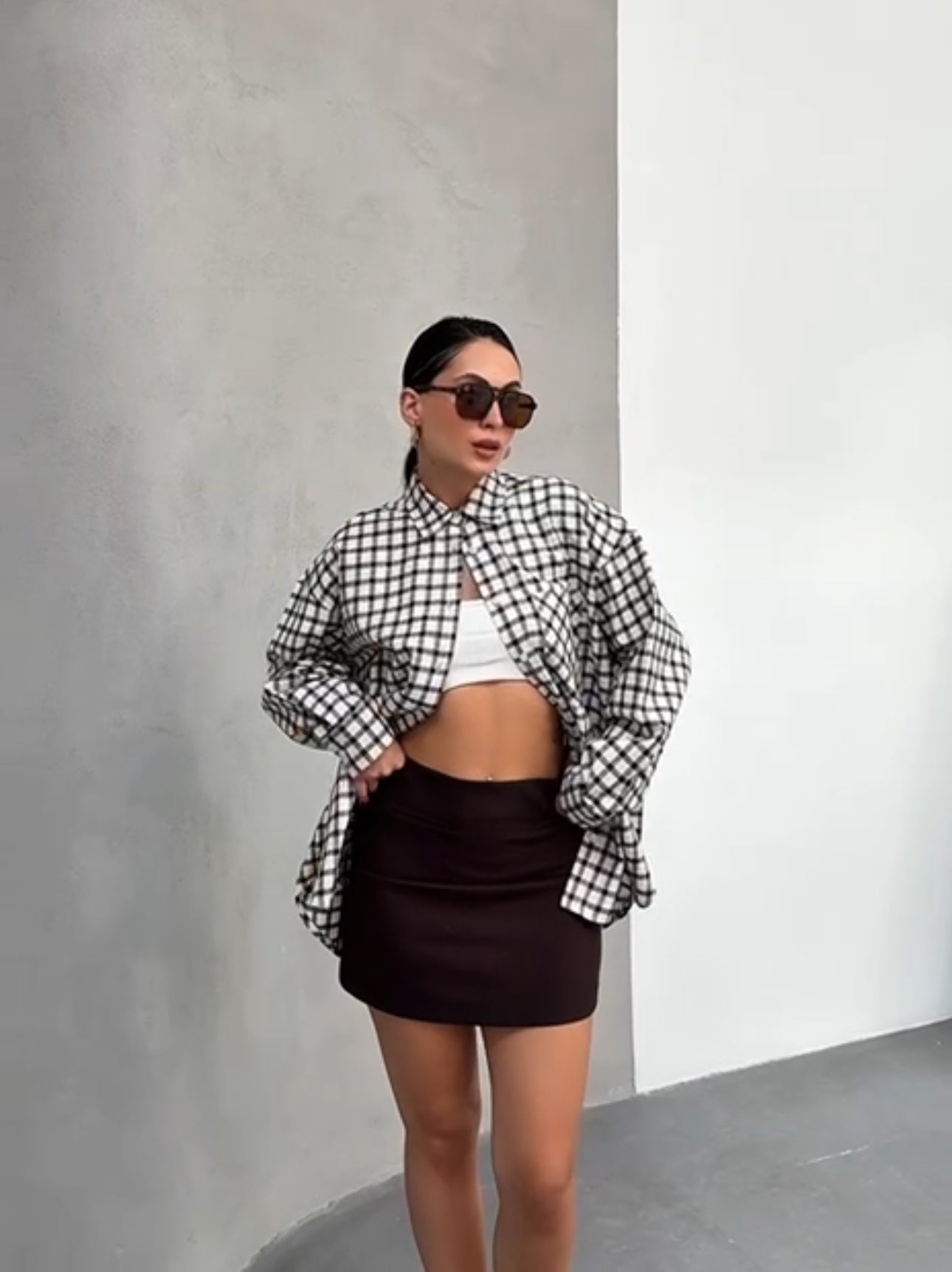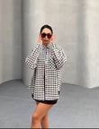 Oversized Checkered Shirt for Women – Black & White Streetwear Style
