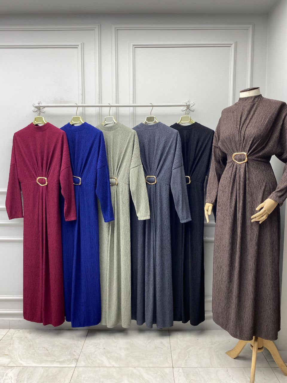 Textured Belted Maxi Dress – Elegant, Modest & Refined