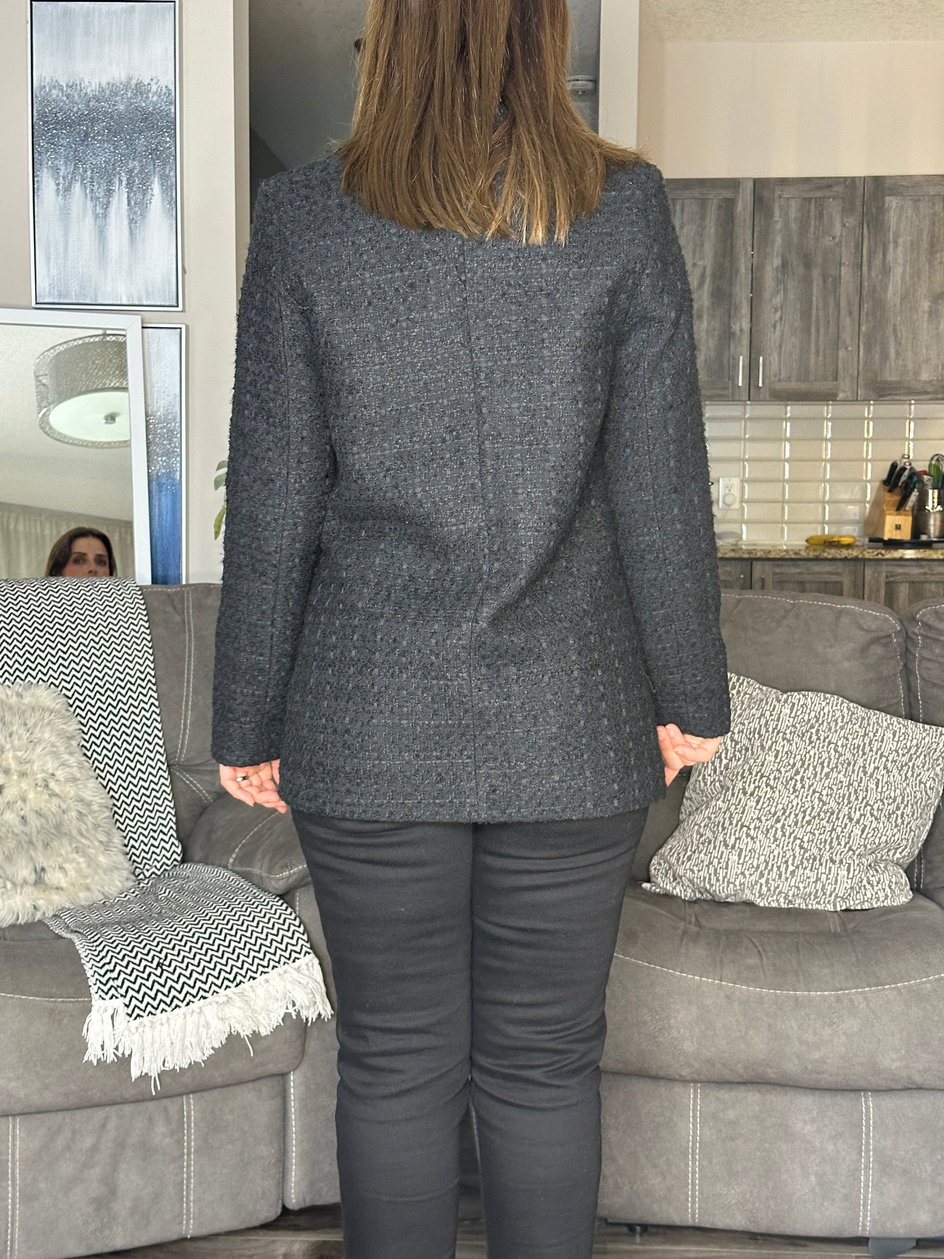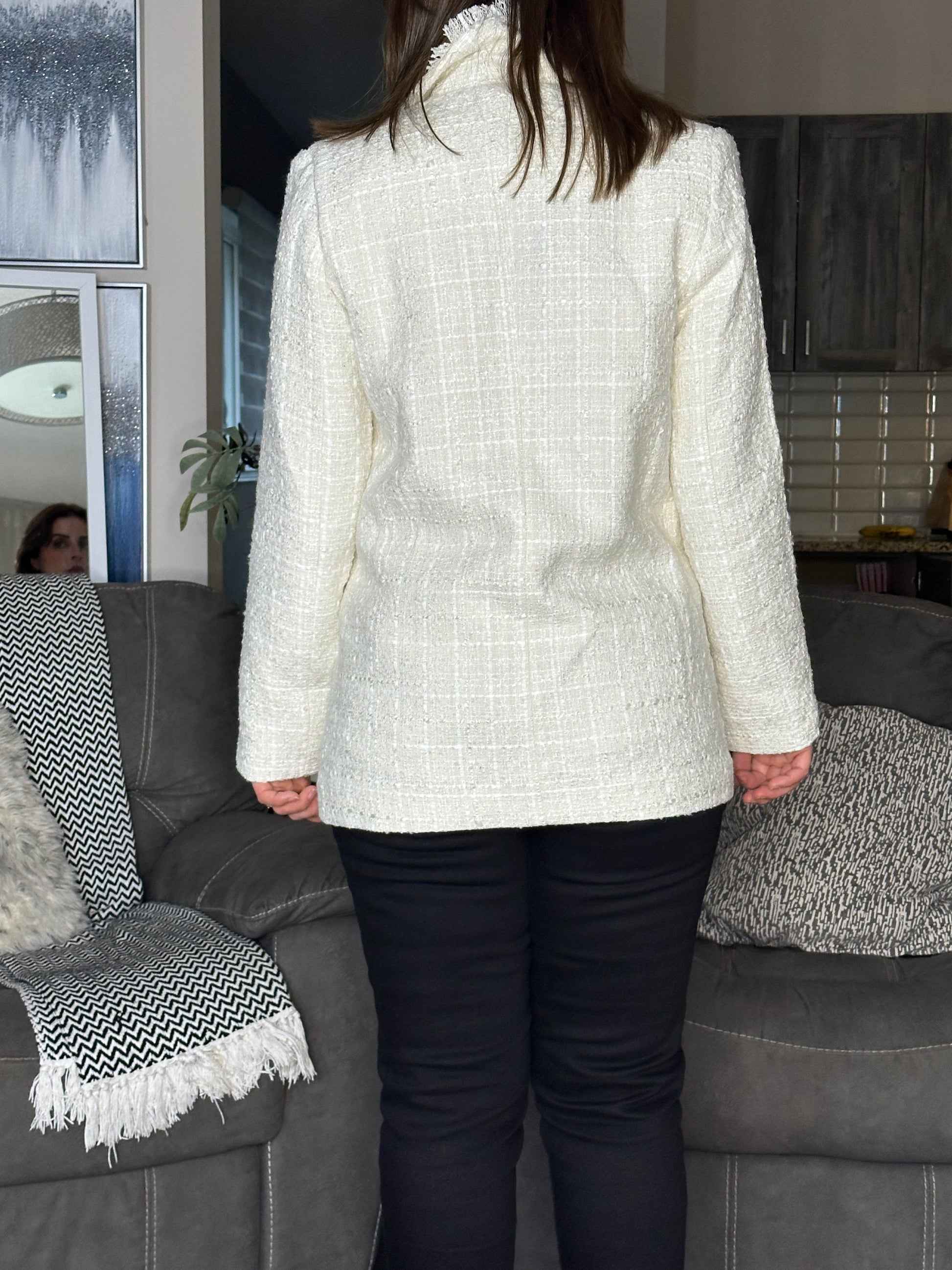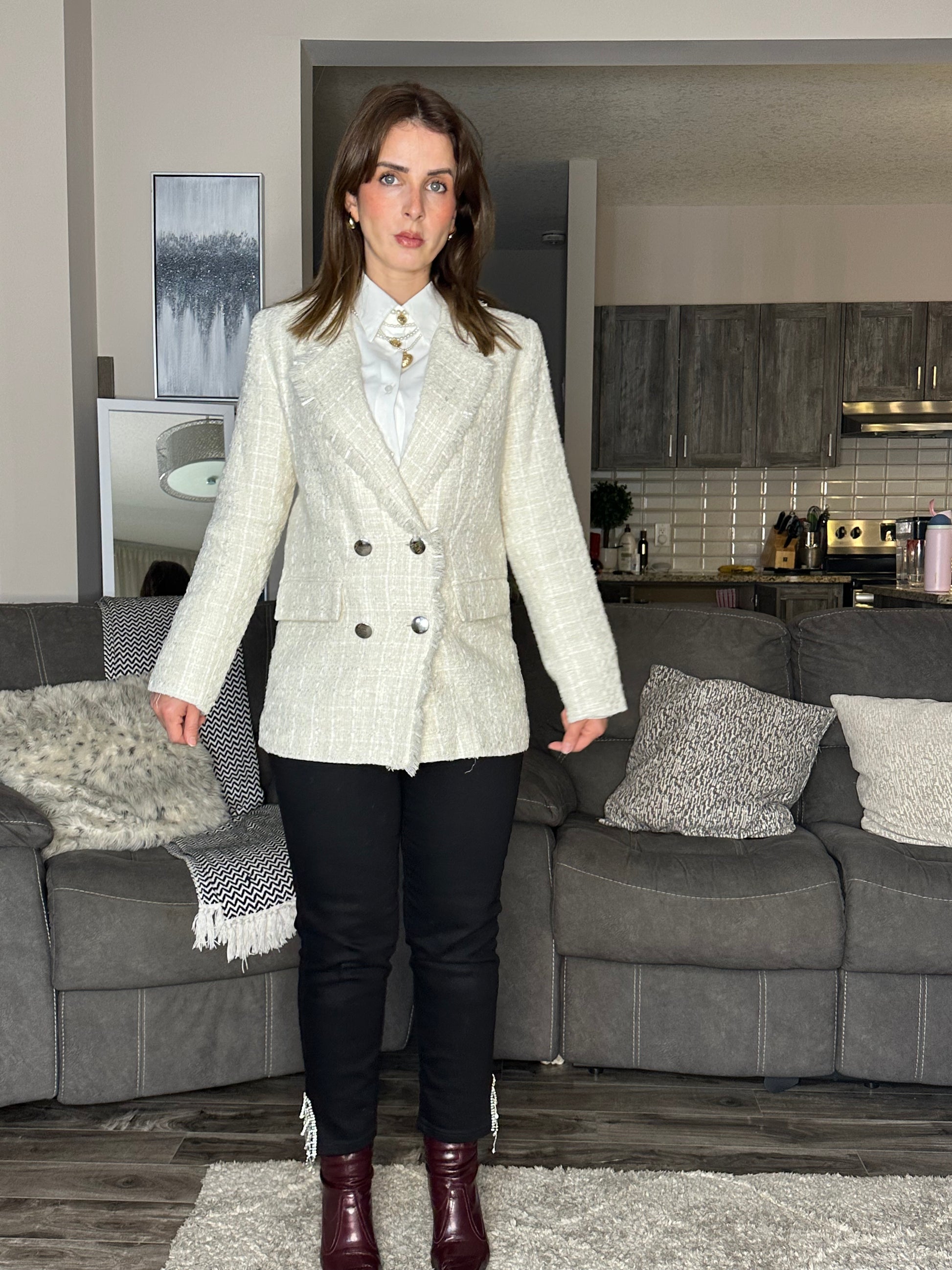 Textured Double-Breasted Blazer with Metallic Buttons – Structured Formal Layer (Shirt Sold Separately)