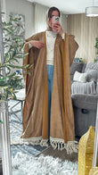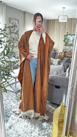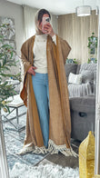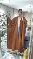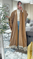 Textured Suede Becht Abaya with Fringe Detail – Statement Elegance