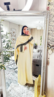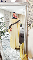 Arabic Calligraphy Abaya Dress with Built-In Scarf – Elegant Draped Silhouette