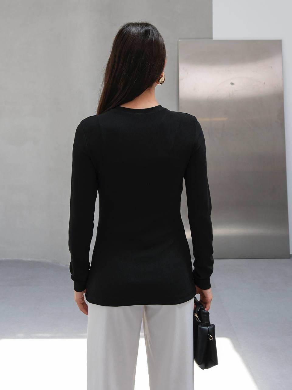 • Bottom: Tailored wide-leg trousers with a clean finish