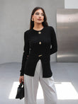 Women’s Embellished Tunic Set – Gold Accent Long Sleeve Top & Tailored Pants | Elegant Modest Fashion