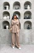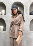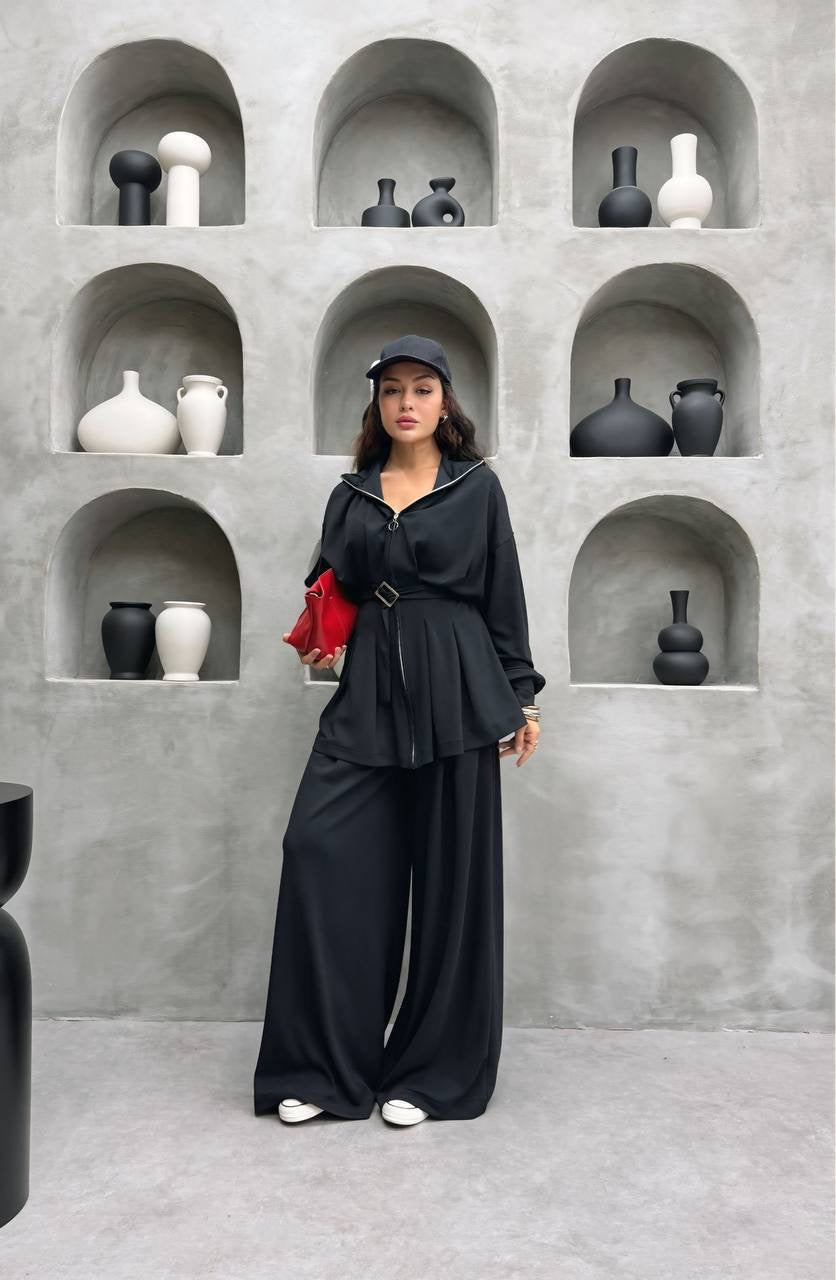 Women’s Zip-Up Belted Set – Long Sleeve Tunic & Wide-Leg Pants | Modest Streetwear Outfit